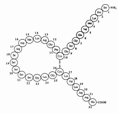 SPKMVQGSGCFGRKMDRISSSSGLGCKVLRRH (Disulfide bridge: 10-26)